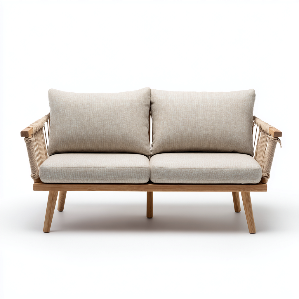 Divani da esterno - legno-tessuto-corda - 154x81x83 cm - grigio - stile naturale