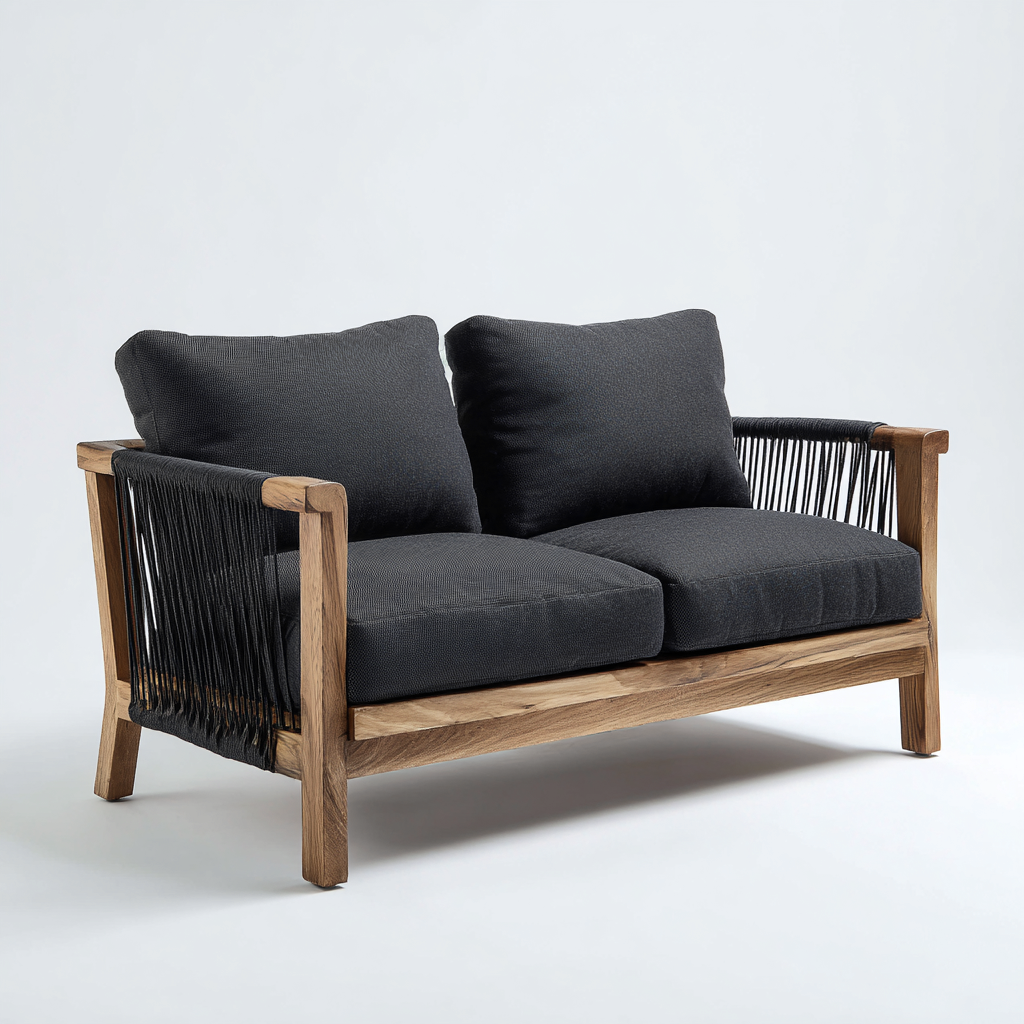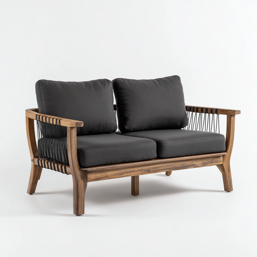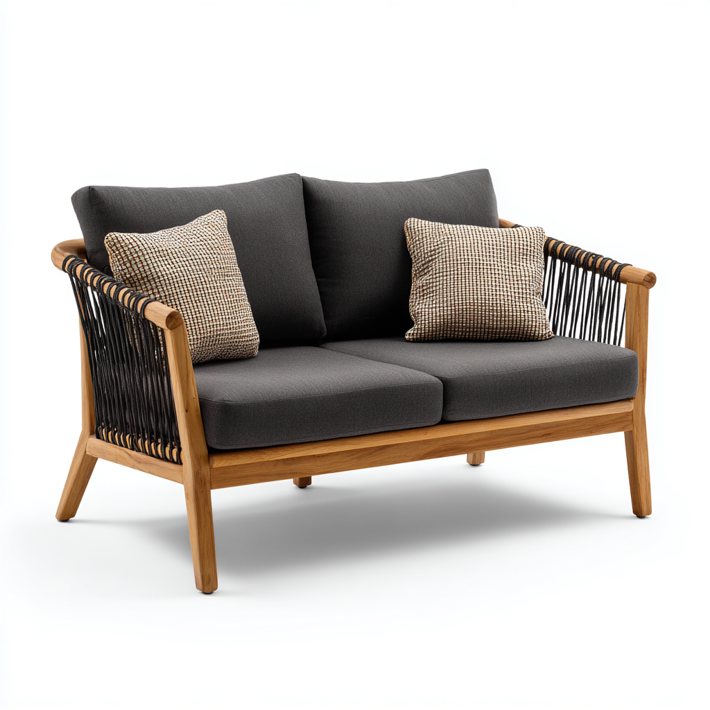 Divani da esterno - legno-tessuto-corda - 150x82x83 cm - grigio - stile naturale