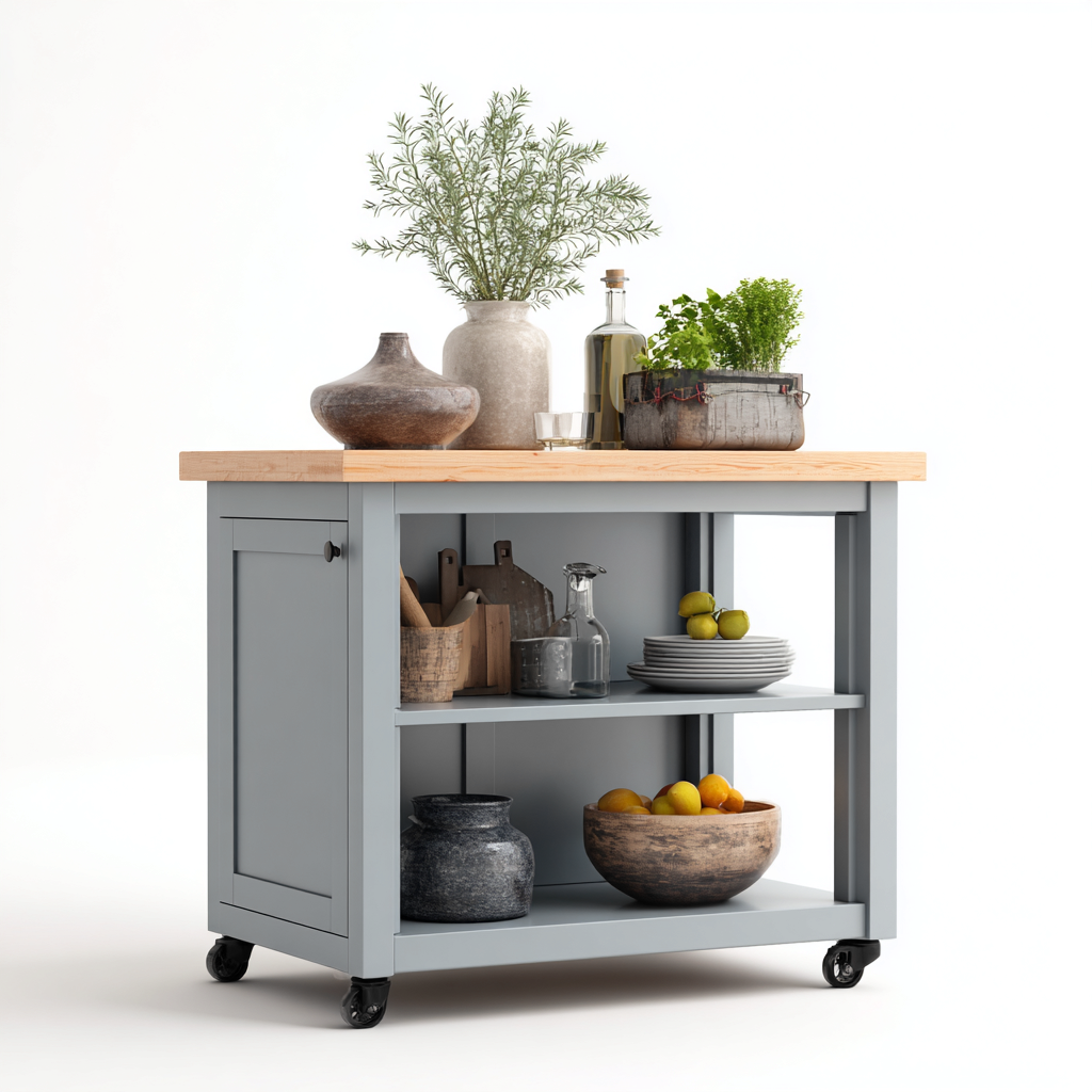 Isola da cucina-legno-metallo-65x45x90 cm-grigio-legno naturale-stile moderno