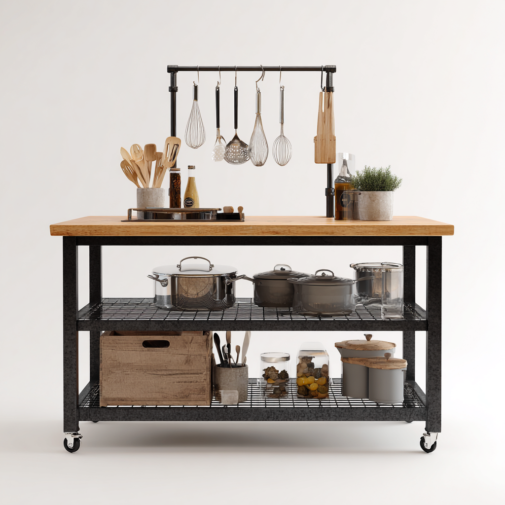 Isola da cucina-legno-metallo-152x76x93 cm-nero-legno naturale-stile industriale