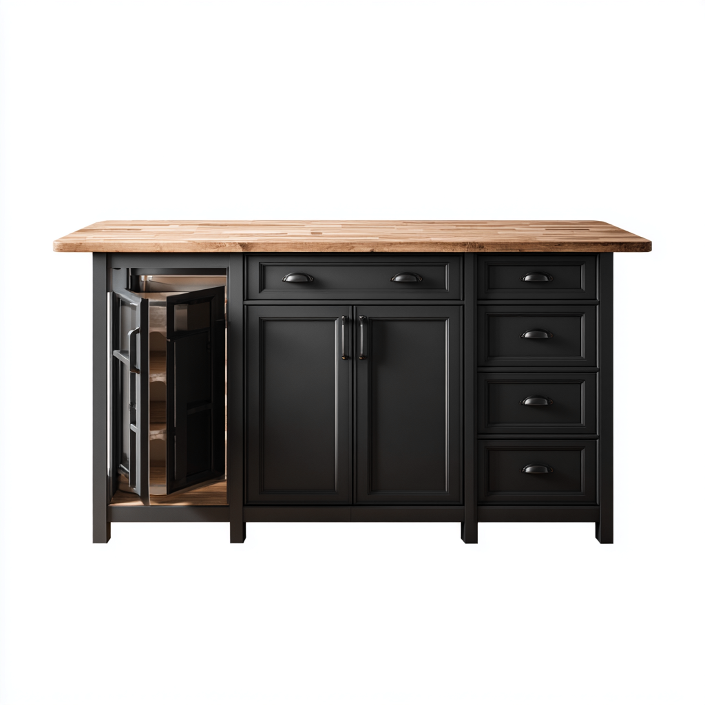 Isola da cucina-legno-metallo-146x74x92 cm-nero-legno naturale-stile industriale