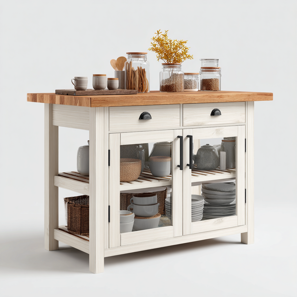 Isola da cucina-legno-150x75x90 cm-bianco-legno naturale-stile rustico