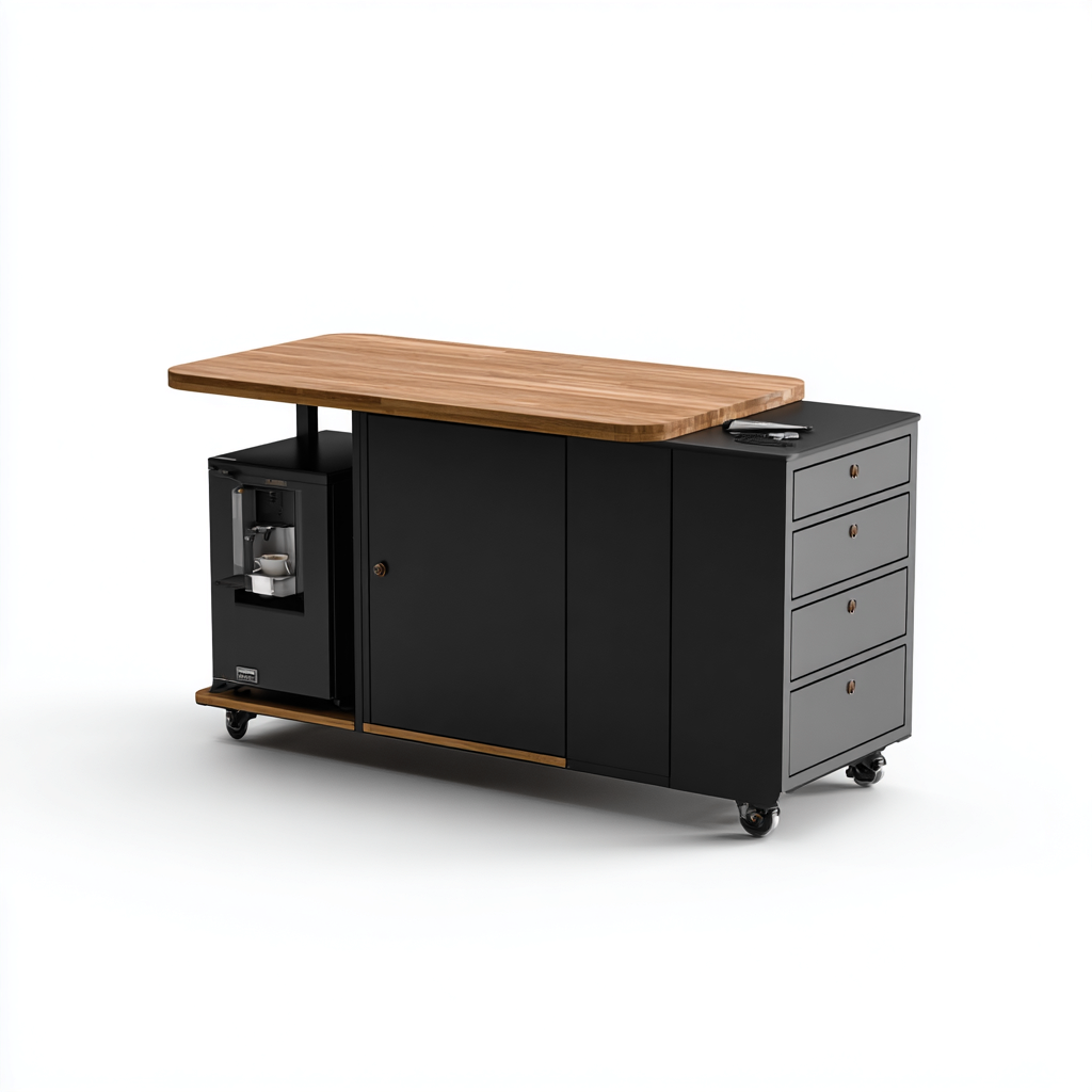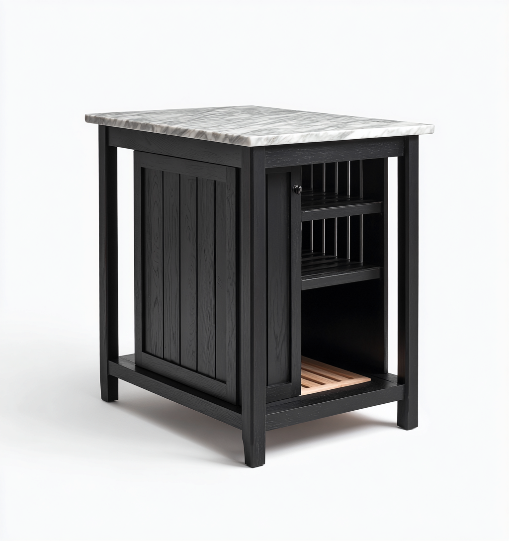 Isola da cucina-legno-pietra-90x60x92 cm-nero-bianco-stile moderno