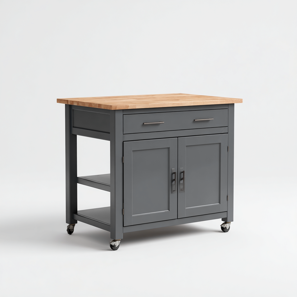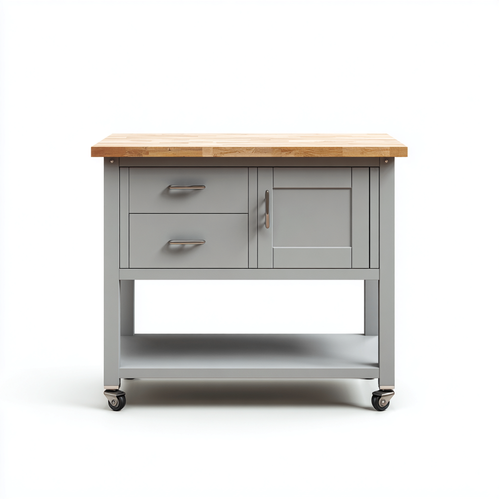 Isola da cucina-legno-metallo-110x60x90 cm-grigio-legno naturale-stile moderno