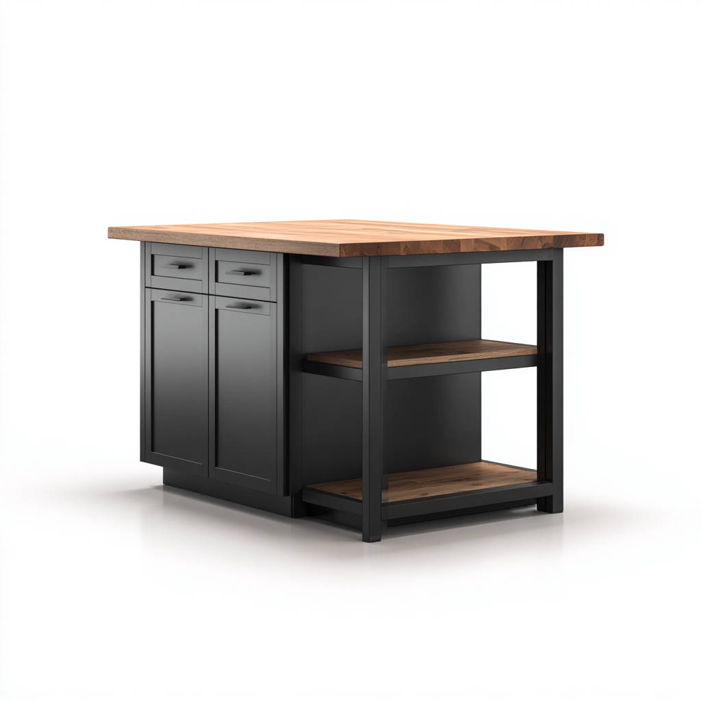 Isola da cucina-legno-metallo-92x58x90 cm-nero-legno naturale-stile industriale