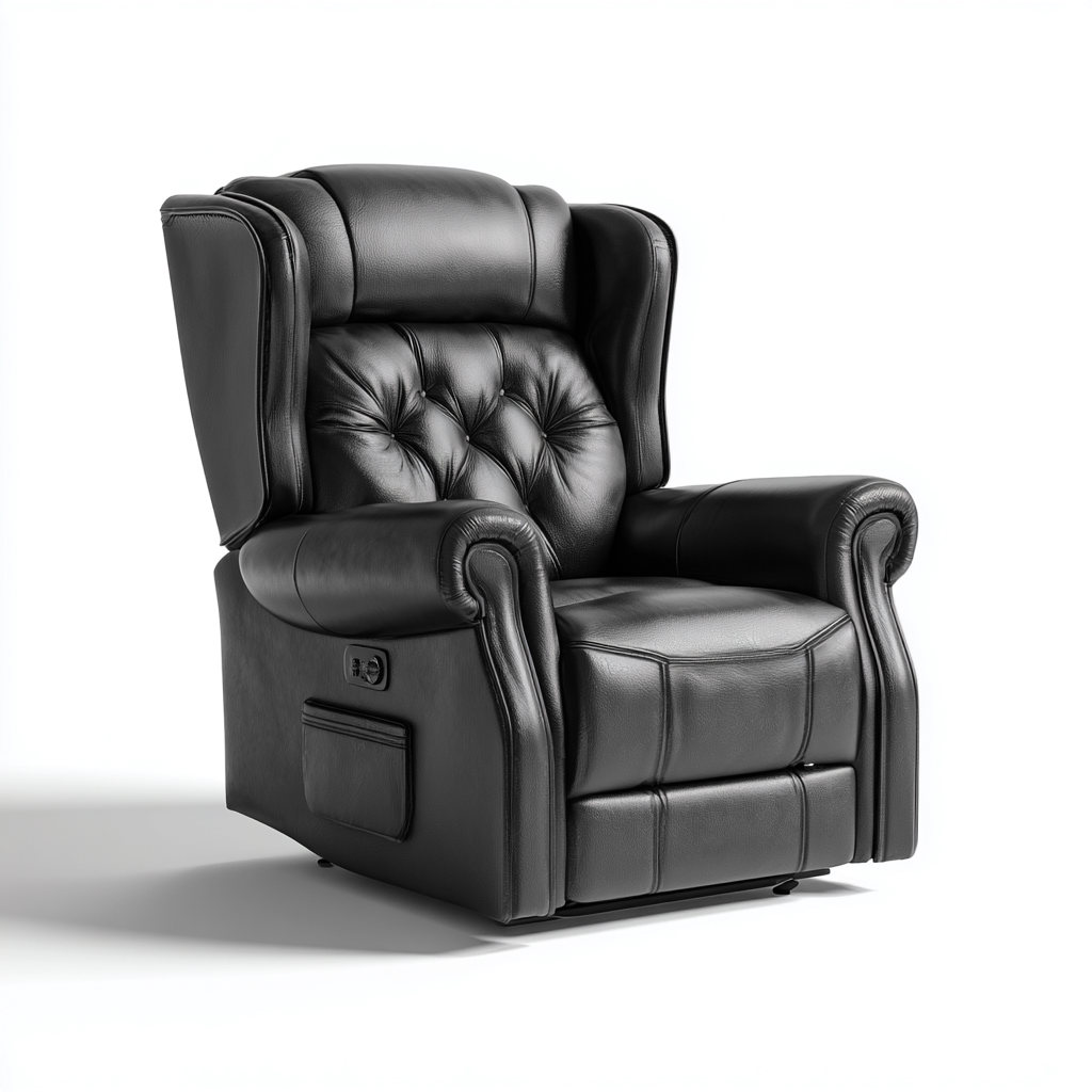 Poltrona reclinabile-pelle-metallo-89x97x111 cm-nero-stile classico