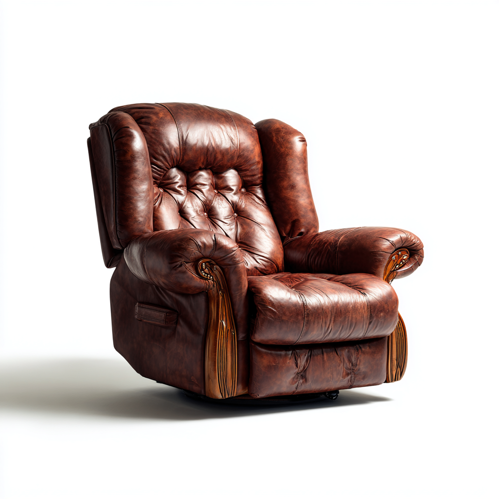 Poltrona reclinabile-pelle-legno-88x96x110 cm-marrone-stile classico