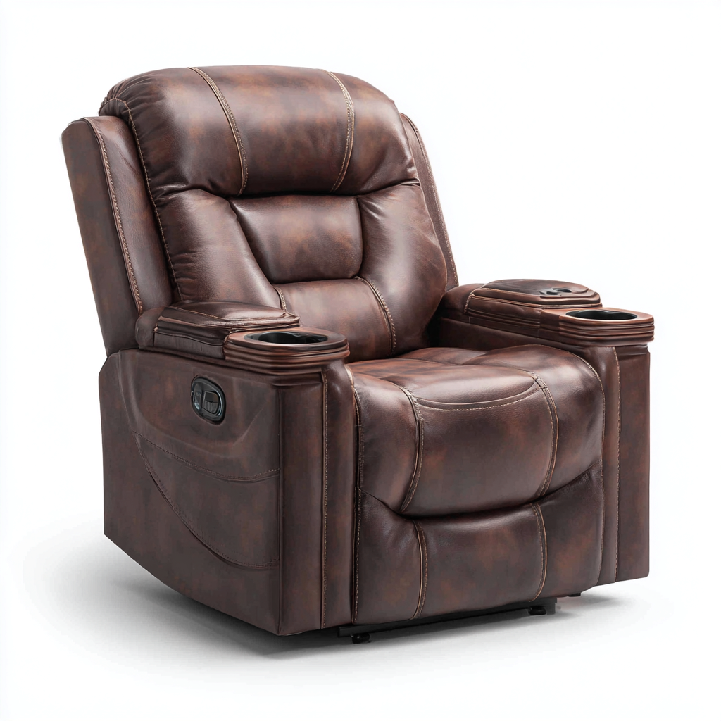 Poltrona reclinabile-tessuto-pelle-85x93x107 cm-marrone-nero-stile contemporaneo