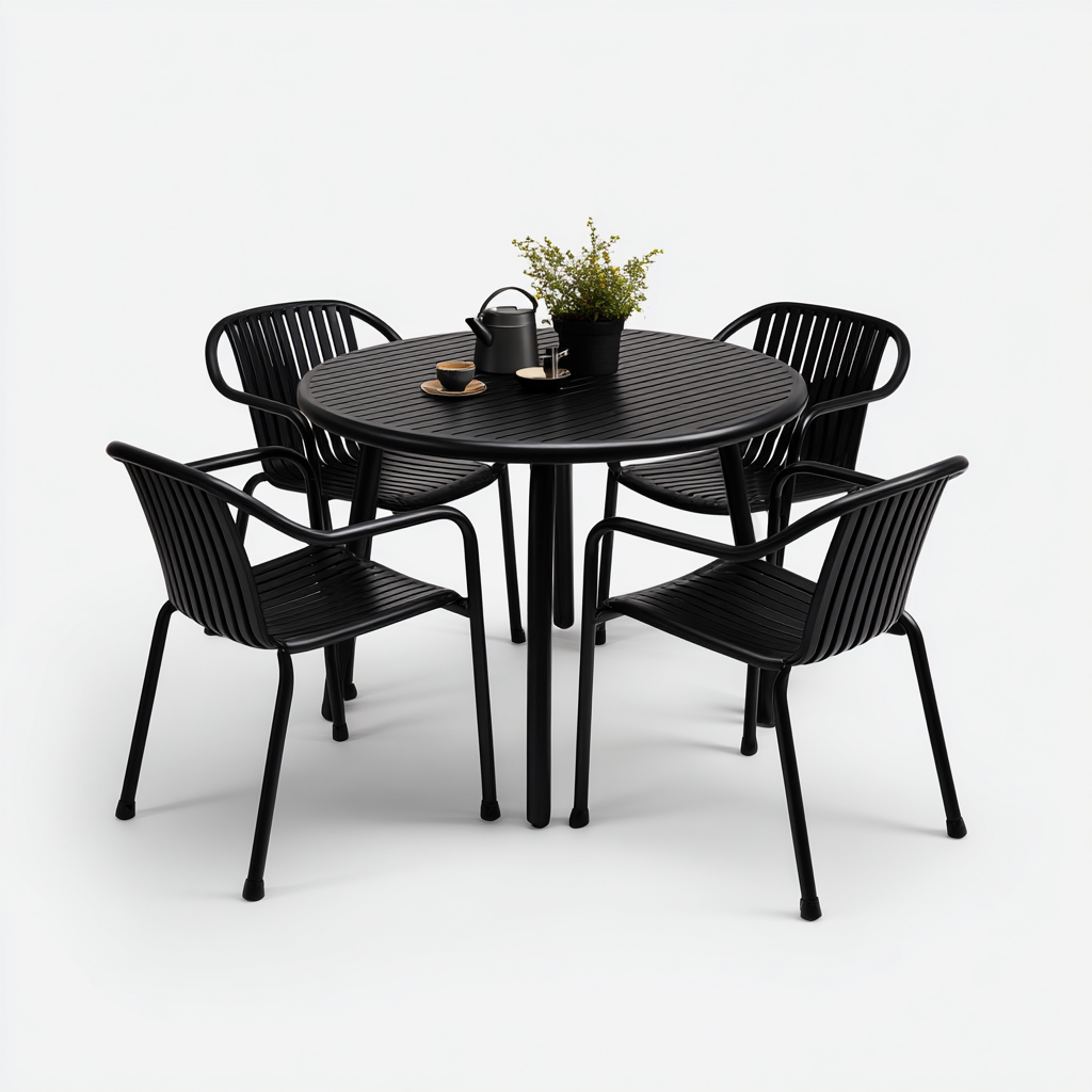 Set da pranzo per terrazza - metallo - 110x110x75 cm - nero - stile moderno