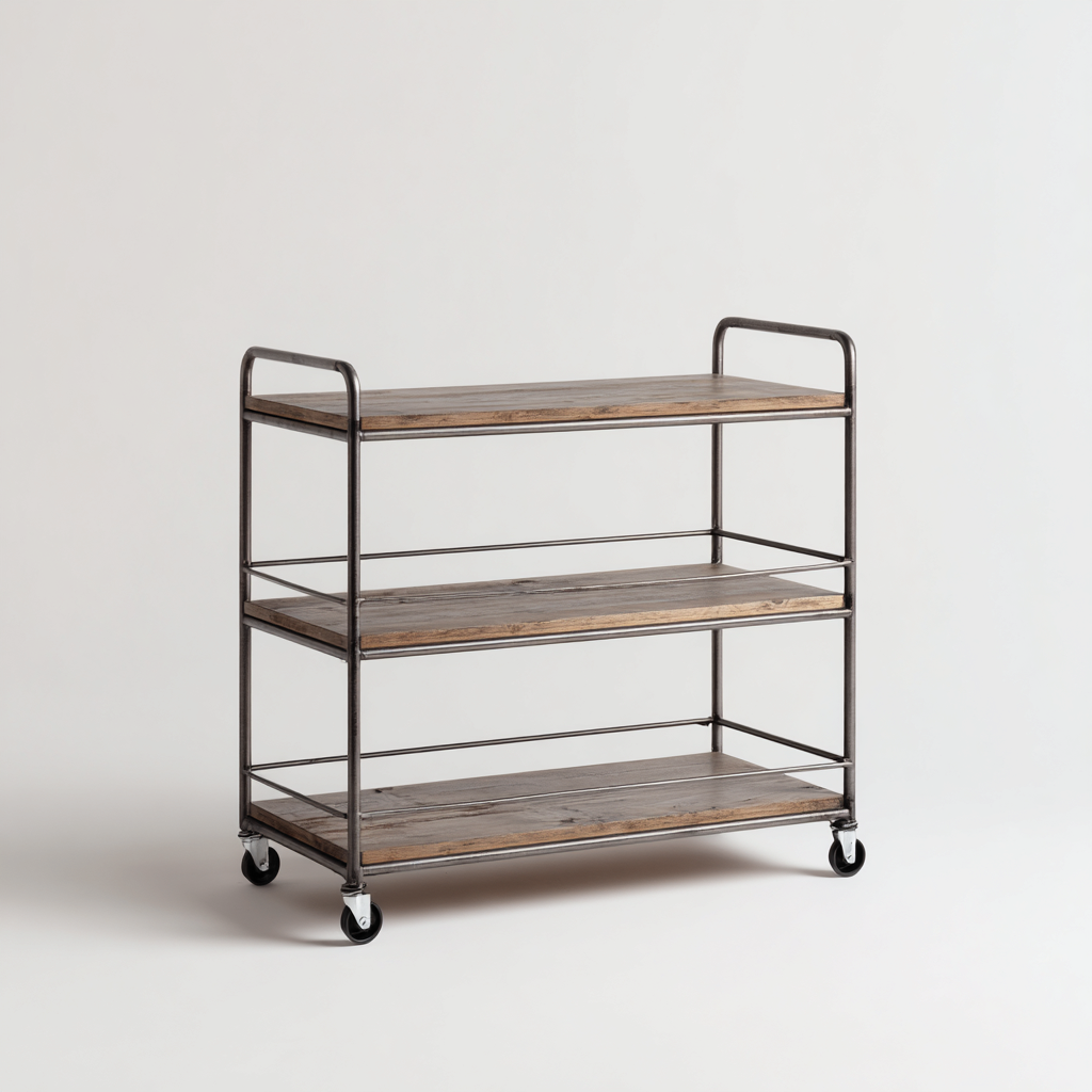 Carrello da cucina dal design lineare e funzionale, adatto a supportare le attivita quotidiane di preparazione e organizzazione. La struttura allungata consente di disporre utensili e accessori in modo ordinato mantenendo una buona accessibilita.