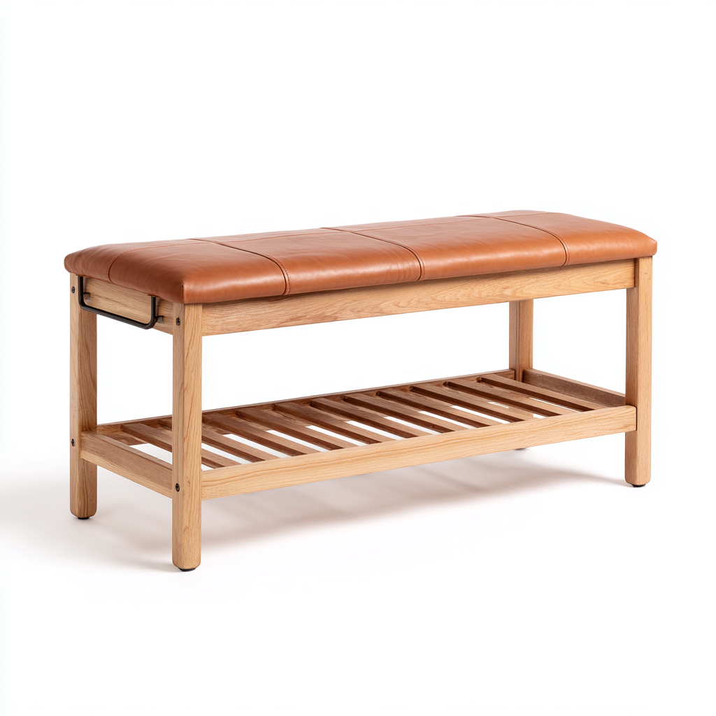 La seduta imbottita assicura comfort durante l'utilizzo, mentre la struttura in legno offre stabilità e supporto affidabile. La base aperta consente un utilizzo pratico mantenendo l'ingresso ordinato.