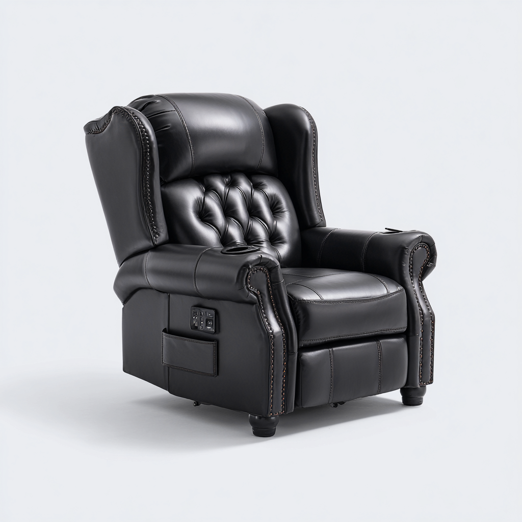 Questa poltrona reclinabile è progettata per offrire una seduta confortevole e una struttura stabile per l'uso quotidiano. Il design avvolgente dello schienale e le proporzioni equilibrate la rendono adatta al soggiorno o a uno spazio dedicato al relax domestico.