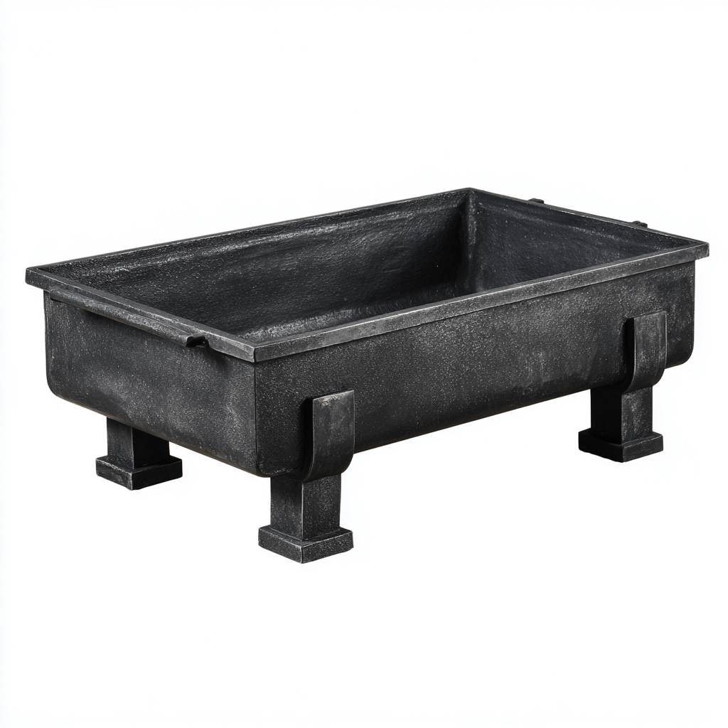 Il braciere è realizzato interamente in metallo con finitura nera opaca. Le pareti spesse e la vasca profonda garantiscono resistenza alle alte temperature, mentre i supporti integrati assicurano una base solida durante l'uso.