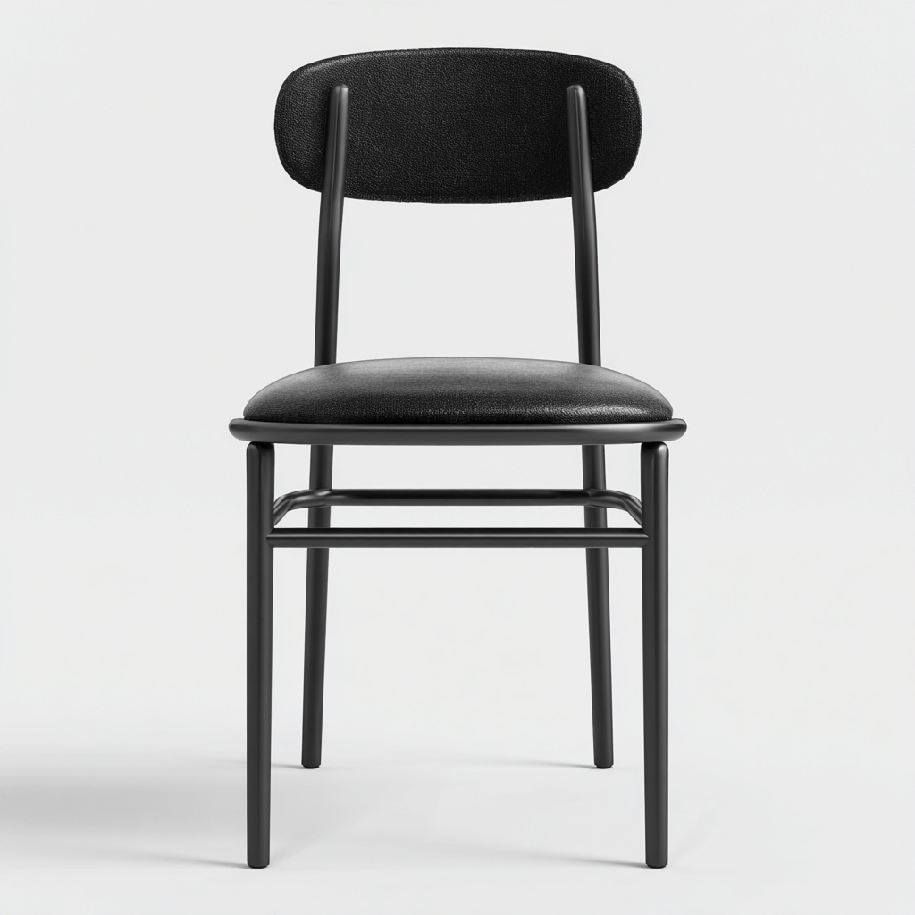Questa sedia da pranzo si distingue per un design essenziale e deciso, pensato per ambienti moderni e industriali. La struttura lineare e la seduta compatta la rendono adatta a sale da pranzo, cucine contemporanee o spazi contract.