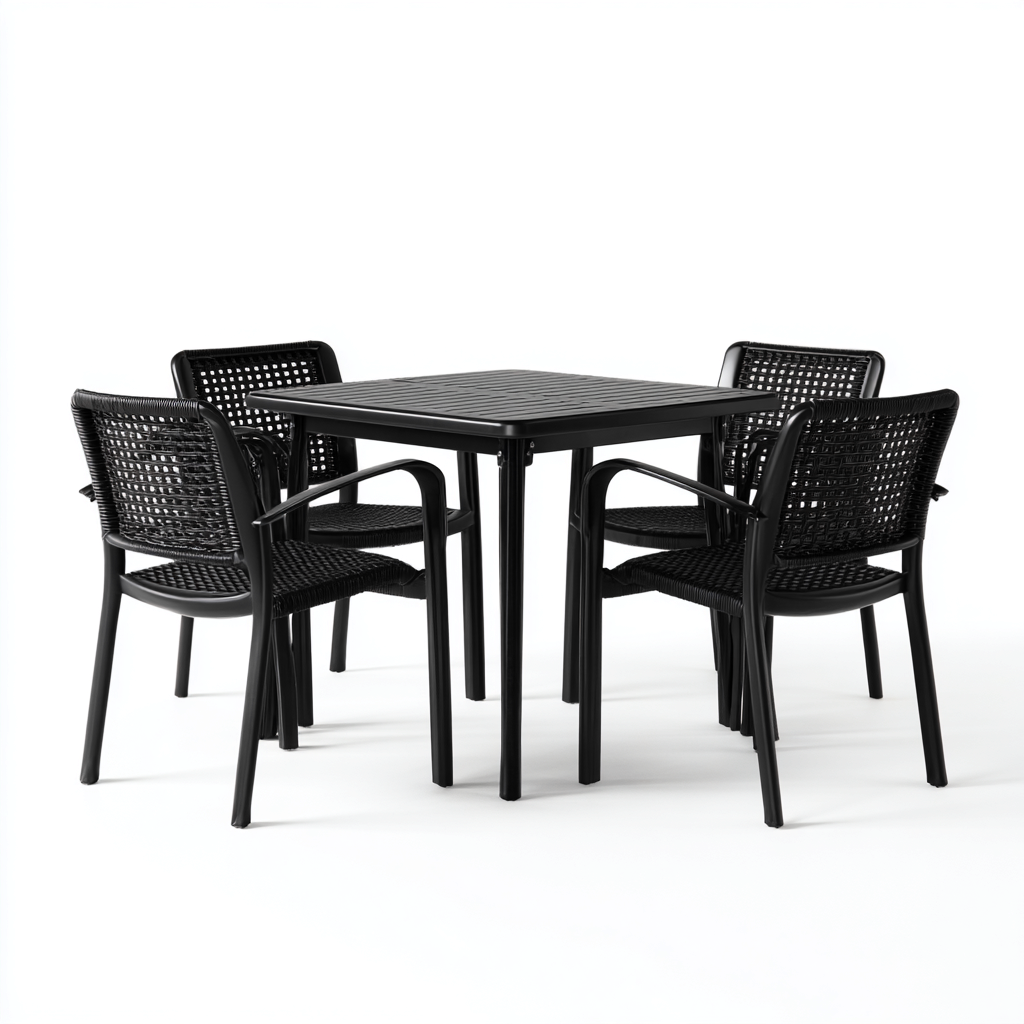 Questo set da pranzo per terrazza è progettato per arredare in modo funzionale e ordinato spazi outdoor come terrazze, giardini e aree patio. Il tavolo quadrato offre una superficie stabile per i pasti, mentre le sedie abbinate permettono una disposizione equilibrata e adatta all'uso quotidiano all'aperto.